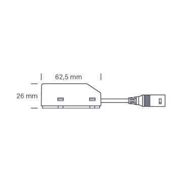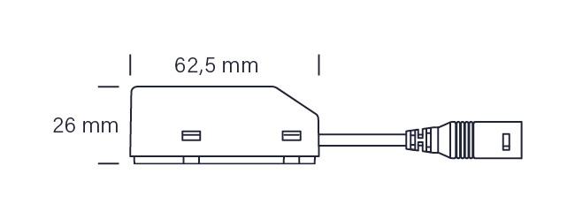 Dimension tilslutningsboks  L: 62,5 mm, B: 44 mm, H: 26 mm